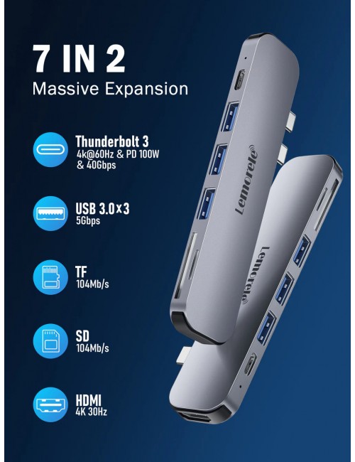 Lemorele TC52: Hub USB-C 7 en 2 para MacBook Pro y Air – Alta velocidad, diseño compacto y máxima compatibilidad