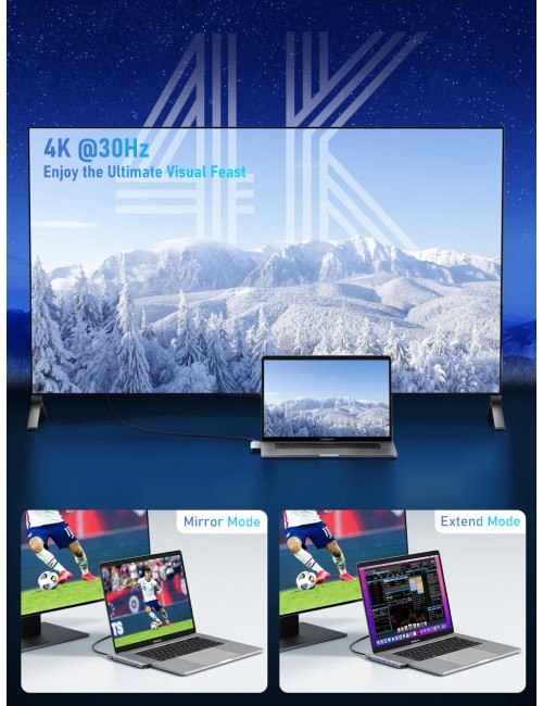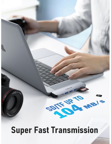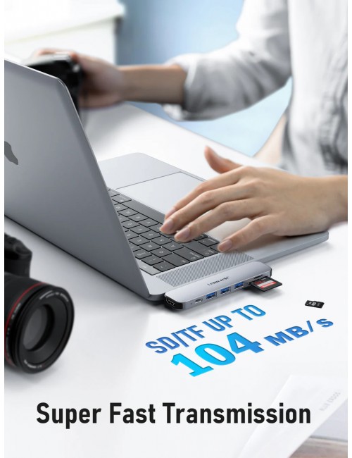 El Lemorele TC52 es un elegante y potente hub USB-C 7 en 2 diseñado especialmente para usuarios de MacBook Pro y MacBook Air con doble puerto USB-C. Fabricado en aleación de aluminio y con un diseño compacto, este adaptador expande enormemente las capacidades de tu portátil sin comprometer la estética ni la portabilidad.