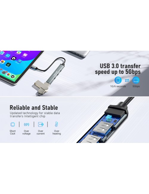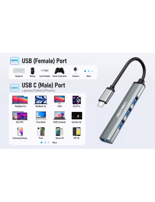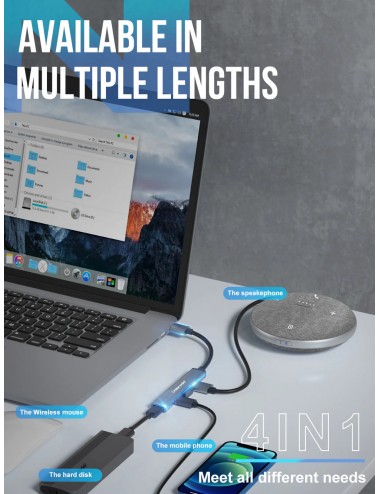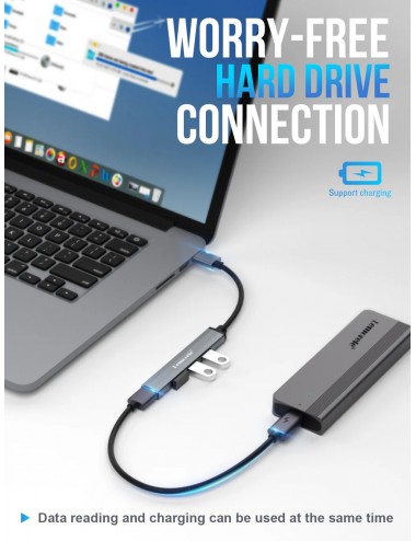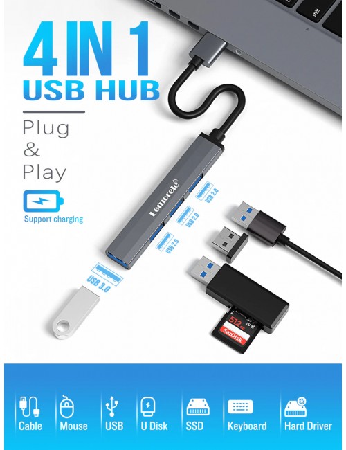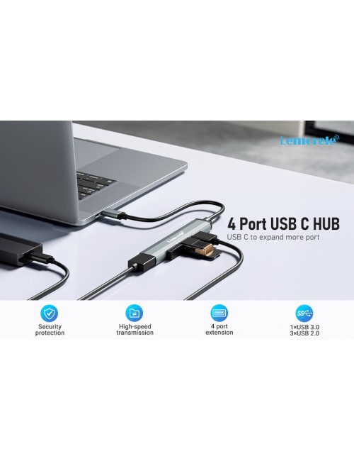 El Lemorele TC53 es un hub USB tipo C de 4 puertos diseñado para quienes buscan una solución elegante, ligera y eficiente para ampliar sus opciones de conexión. Este adaptador portátil combina una carcasa metálica duradera con un diseño delgado que ahorra espacio, ideal para quienes trabajan en movimiento o desean mantener un escritorio ordenado.
