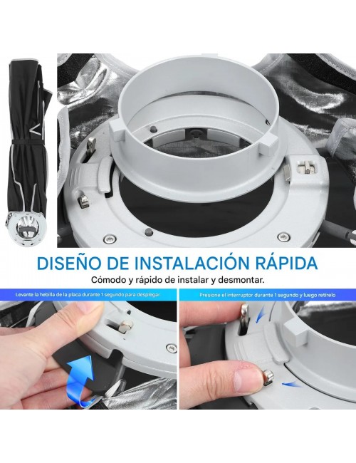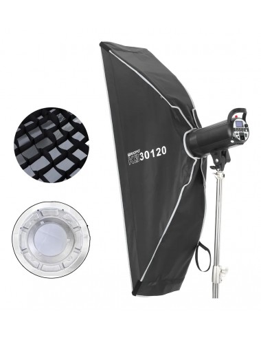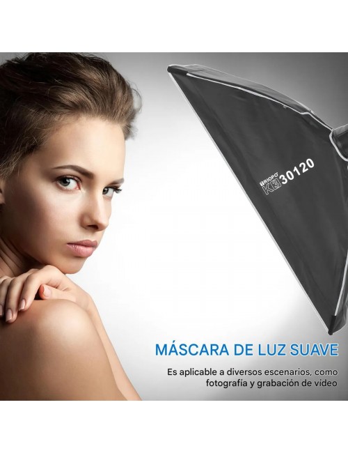 Triopo K3-30120 +TR-07C Softbox Armado Instantáneo Montura Bowens y Speedlight de 30x120 cms