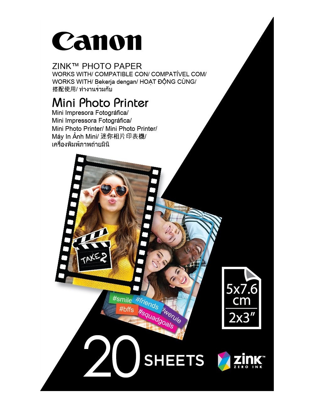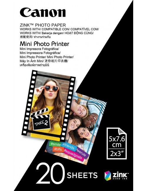 Canon ZINK Photo Paper 20 Papeles Para Cámaras ZOEMINI y Mini Impresoras Canon