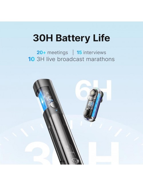 80 dB de relación señal/ruido y 115 dB SPL de nivel máximo.La cancelación de ruido por IA ofrece dos modos conmutables desde el transmisor: