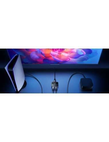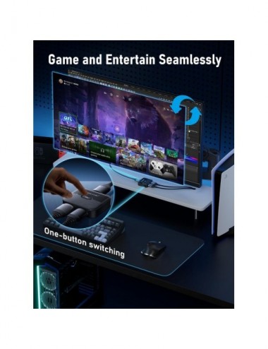 - Permite conmutar entre dos fuentes HDMI hacia una sola pantalla o de una fuente hacia dos pantallas (no simultáneas).