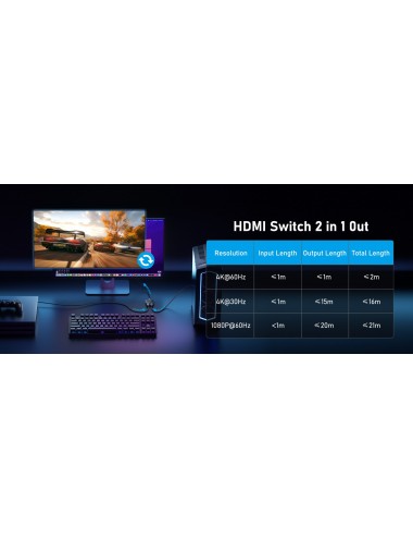 Lemorele HDMI Switch 2 Entradas 1 Salida 4K 60Hz Bidireccional