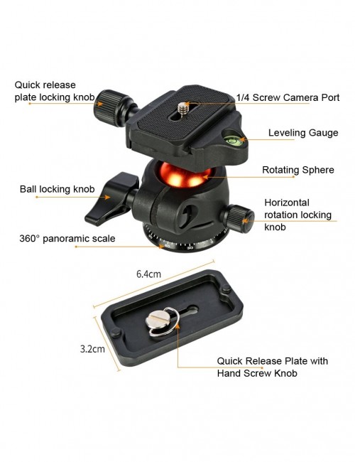 Triopo KJ36 Cabezal de Bola Soporta 6 Kilos
