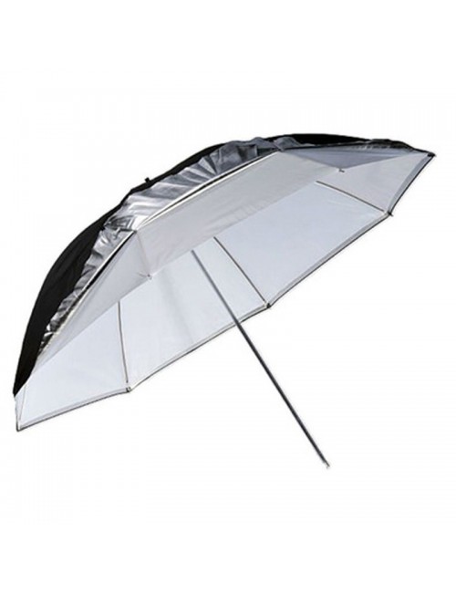 Paraguas que sirve tanto para usar como difusor, como reflector blanco al disparar el flash hacia el paraguas y con la capa exterior montada.