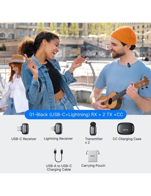 El BOYA mini 2 es un sistema de micrófono y receptor elegante, ligero y discreto, diseñado para grabaciones y transmisiones sobre la marcha. Ideal para creadores de contenido, transmisiones en vivo, vlogging y periodismo móvil, este sistema ofrece una calidad de audio de estudio en un formato increíblemente compacto.