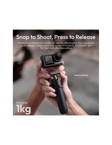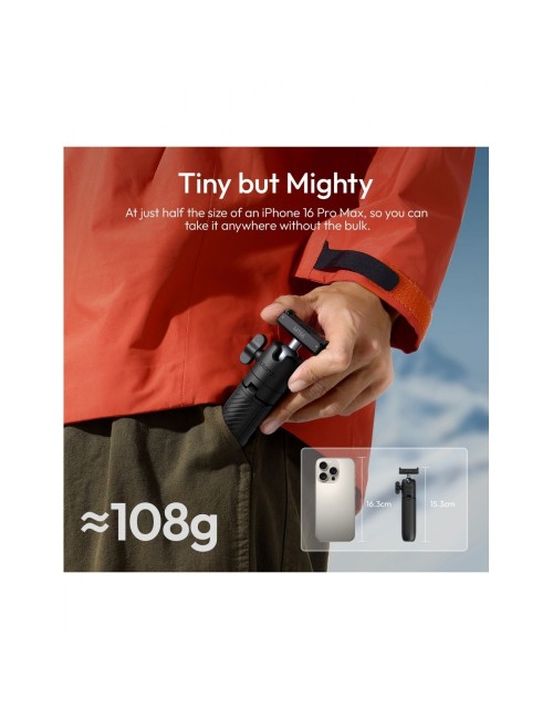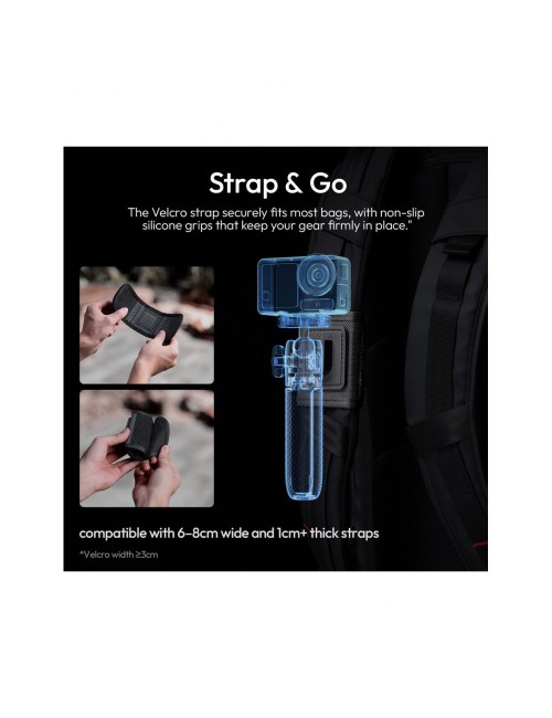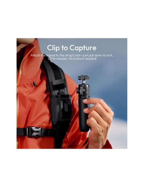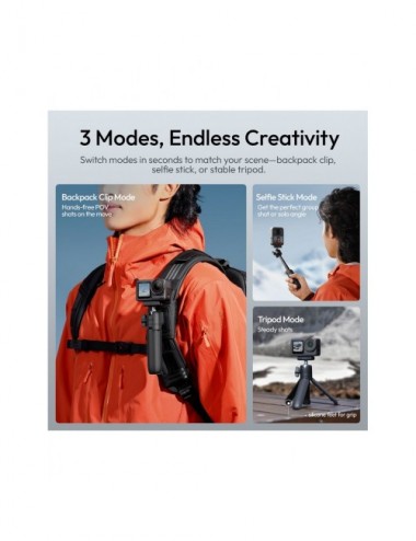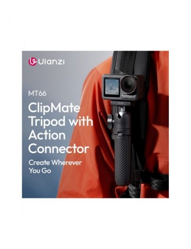 El Ulanzi MT66 ClipMate es una solución "todo en uno" diseñada específicamente para usuarios de cámaras DJI Osmo Action. Este versátil accesorio combina un palo selfie extensible, un mini trípode estable y un sistema de montaje para correas de mochila, permitiendo capturar aventuras desde cualquier ángulo con la máxima rapidez gracias a su conector magnético de liberación rápida.