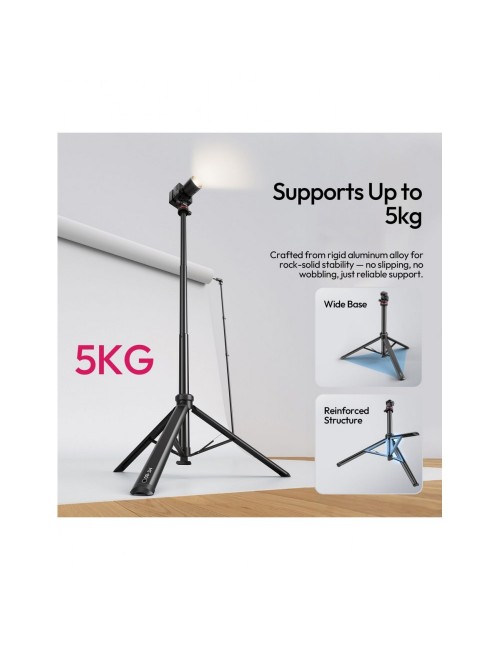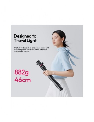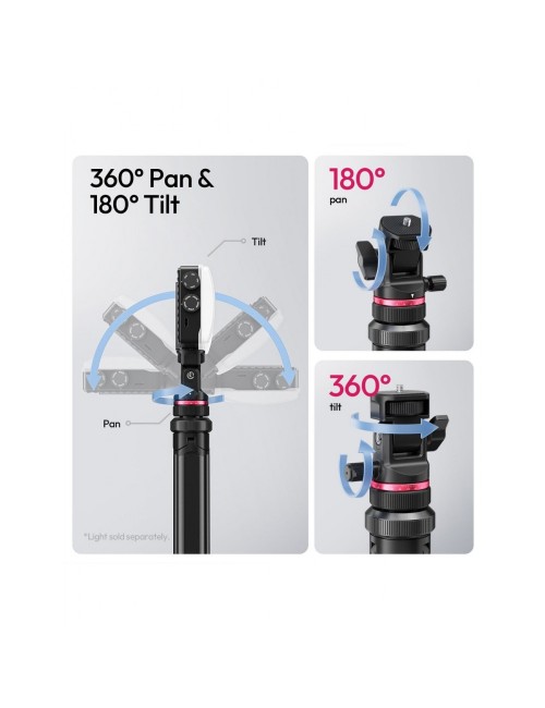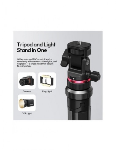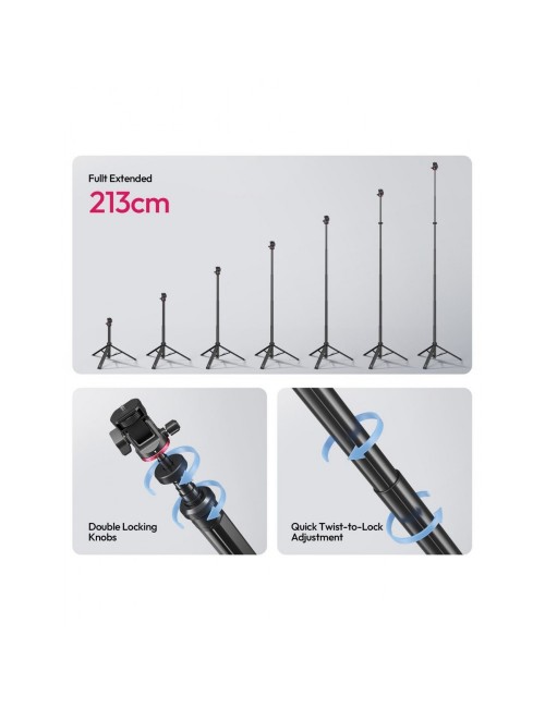 Con una altura máxima de 213 cm y una capacidad de carga de 5 kg, es ideal para una amplia gama de cámaras, luces y accesorios gracias a su tornillo de montaje estándar de 1/4"-20. A pesar de su gran tamaño desplegado, es extremadamente portátil: se pliega a solo 46 cm y pesa aproximadamente 860 g, lo que lo convierte en el compañero de viaje perfecto.