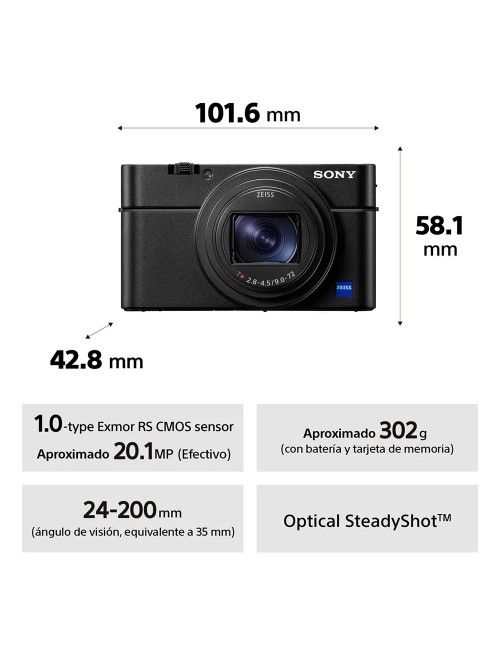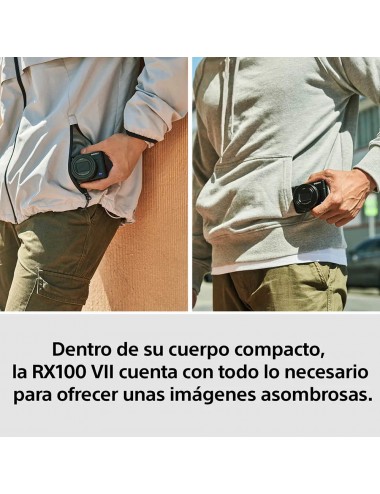 Dentro de su cuerpo compacto, la RX100 VII cuenta con todo lo necesario para ofrecer unas imágenes asombrosas. El lente de zoom de 24-200 mm se complementa con un enfoque automático super rápido de 0,02 s, las nuevas funciones de seguimiento en tiempo real y enfoque automático Eye en tiempo real, además de estabilización de imagen mejorada y un conector para micrófono externo para capturar videos de alta calidad.