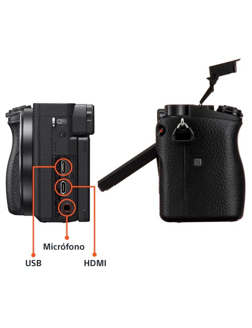 El Wi-Fi integrado permite que la a6400 comparta instantáneamente imágenes con dispositivos móviles para compartirlas directamente en línea con las redes sociales, por correo electrónico y con sitios de almacenamiento en la nube. También se admite NFC (Comunicación de campo cercano), que permite la conexión con un solo toque entre la cámara y dispositivos móviles compatibles; no se requiere una configuración compleja. Una vez conectado, el dispositivo móvil vinculado también puede mostrar una imagen en vivo en su pantalla y controlar de forma remota el obturador de la cámara.