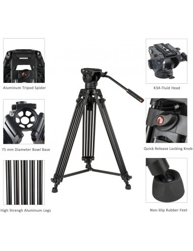 El trípode Triopo DV965S+HY-550 es una opción robusta y versátil diseñada específicamente para videografía, ofreciendo estabilidad y precisión durante la grabación.