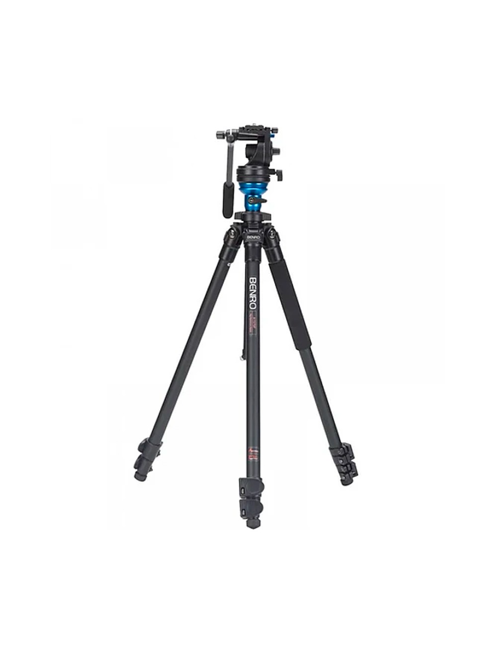 Las patas de trípode de aluminio cuentan con bloqueos giratorios y tres posiciones de patas independientes. El montaje del trípode cuenta con un adaptador de nivelación central, por lo que no tiene que ajustar las patas para equilibrar, y la columna central cuenta con un gancho de peso. Las patas también cuentan con pies de púas y de goma para usar en diferentes superficies.
