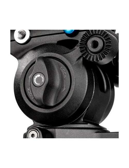 El cabezal S2 PRO presenta un arrastre fijo de giro e inclinación y tiene bloqueos de giro e inclinación independientes. El rango de inclinación es de +90/-70¡ y el rango de panorámica es de 360¡ completos. También cuenta con un nivel de burbuja para ayudar con el equilibrio. La barra panorámica incluida se puede conectar a la roseta derecha o izquierda. Se incluye una placa de cámara deslizante que se puede ajustar hacia delante/hacia atrás para lograr un equilibrio óptimo. Un bloqueo de seguridad garantiza que, una vez montada, la placa no se salga. También hay dos roscas para accesorios de 1/4"-20 que le permiten montar un monitor, un brazo de extensión u otros accesorios.
